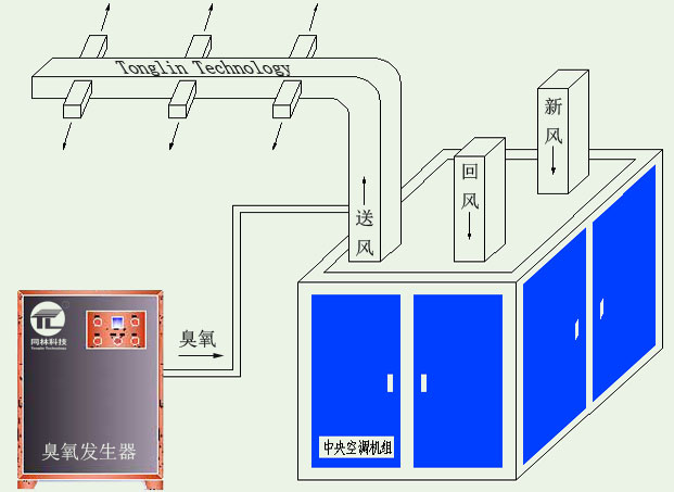 該係列臭氧(yǎng)發生器高濃度臭氧發生(shēng)技術,放置於中央空調外,通過管道把臭氧加入(rù)中央空調送風係統,而使臭(chòu)氧均勻的擴散到需要消毒的房間。